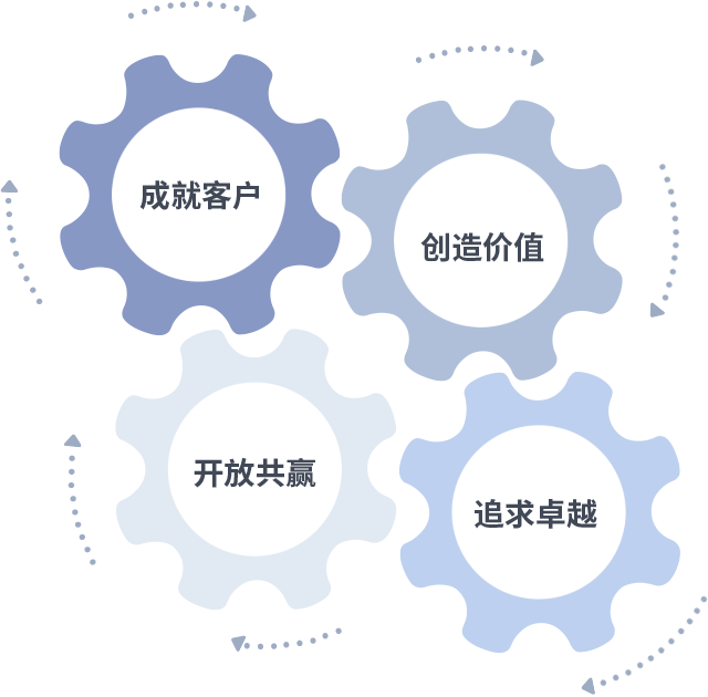 成就客户是一切决策的出发点,创造价值是衡量所有工作的标准,追求卓越是DB真人旗舰做事做人的态度,开放共赢是DB真人旗舰的格局也是最终的结果。价值观的齿轮环环相扣,推动着组织里的每个人不断向前。